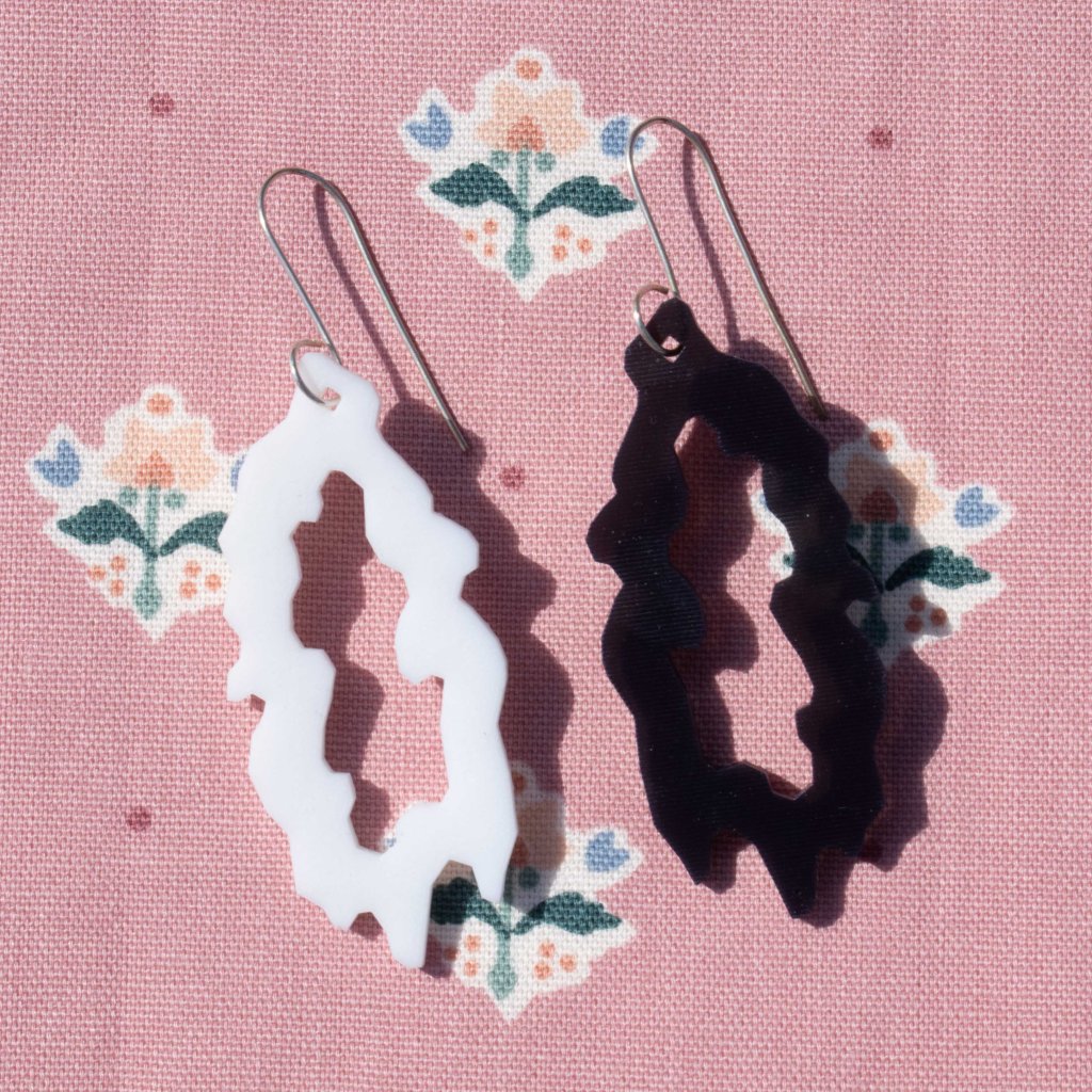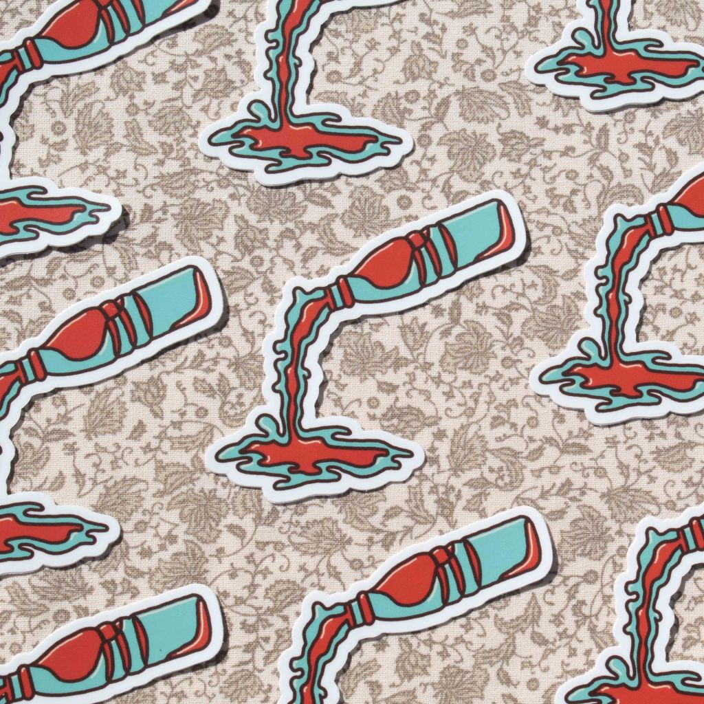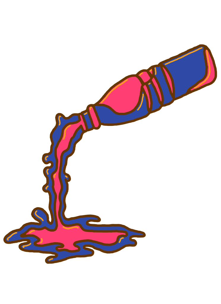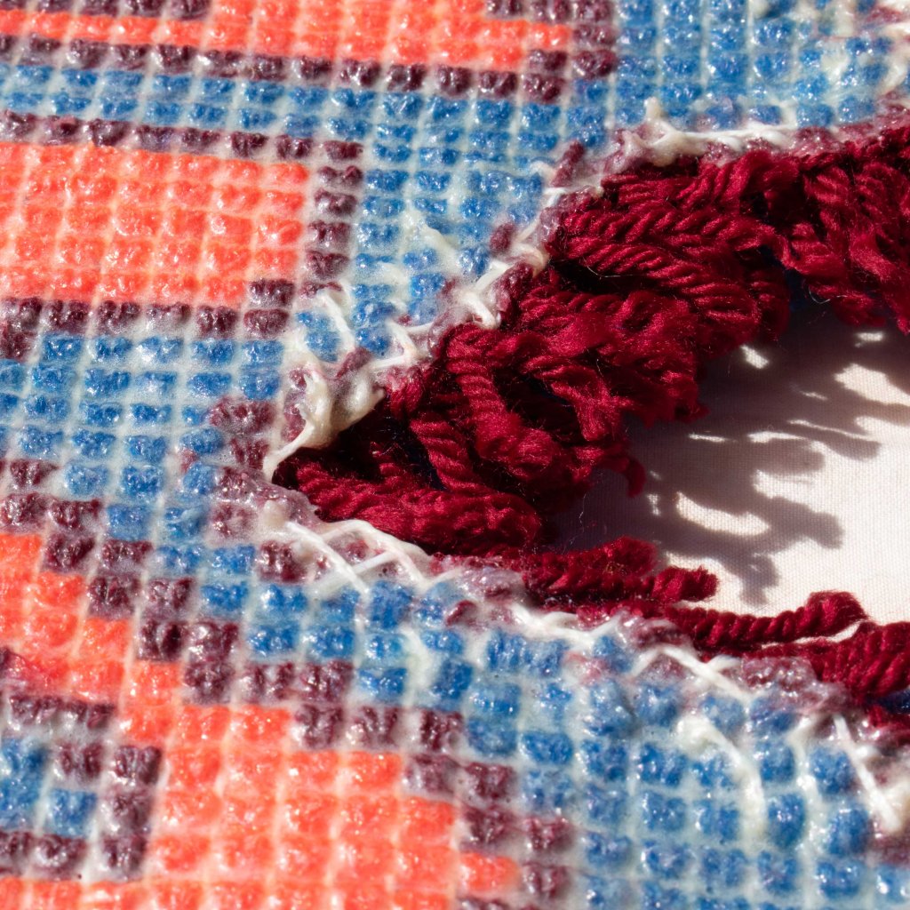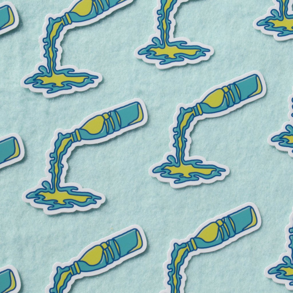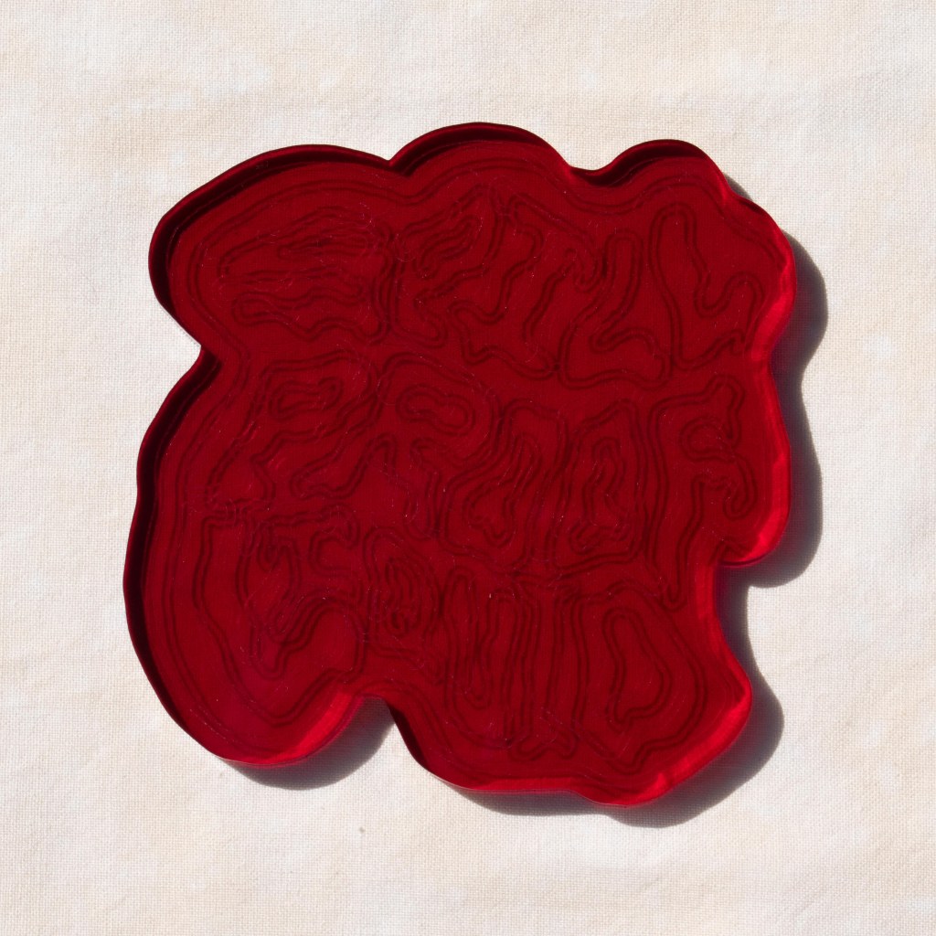 A body of handiwork called SpillProofLiquid. This stylistically repetitive hand work focuses on a drippy, slimy pattern in various color palettes. These designs are typically 3 to 4 colors with graphic linework and flat colors. They are inspired by Japanese style and anime (Jojo’s Bizarre Adventure specifically), psychedelic 70’s styles including shag carpeting, psychedelic designs and themes and concert posters, especially rock concerts. They are focused on craft-type art and handmade methods including sewing, DIY clothing/style/aesthetic, latch hook rugs, etc.
